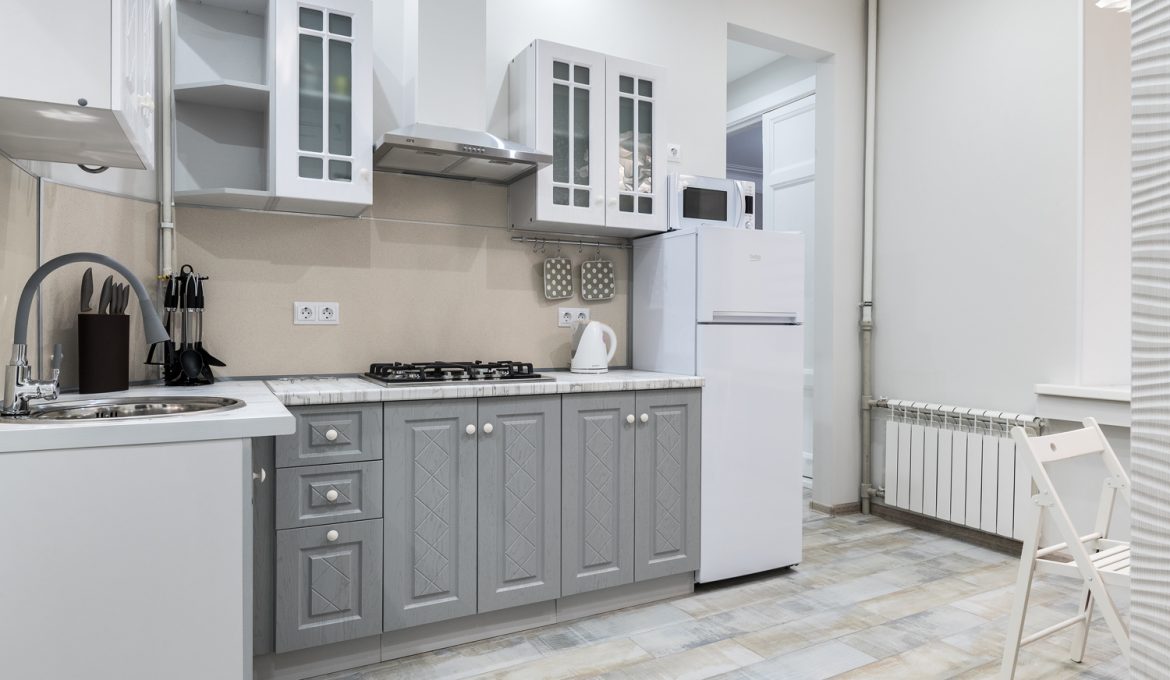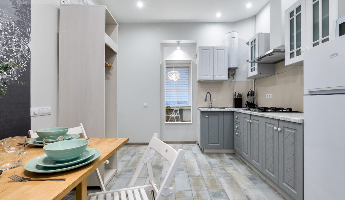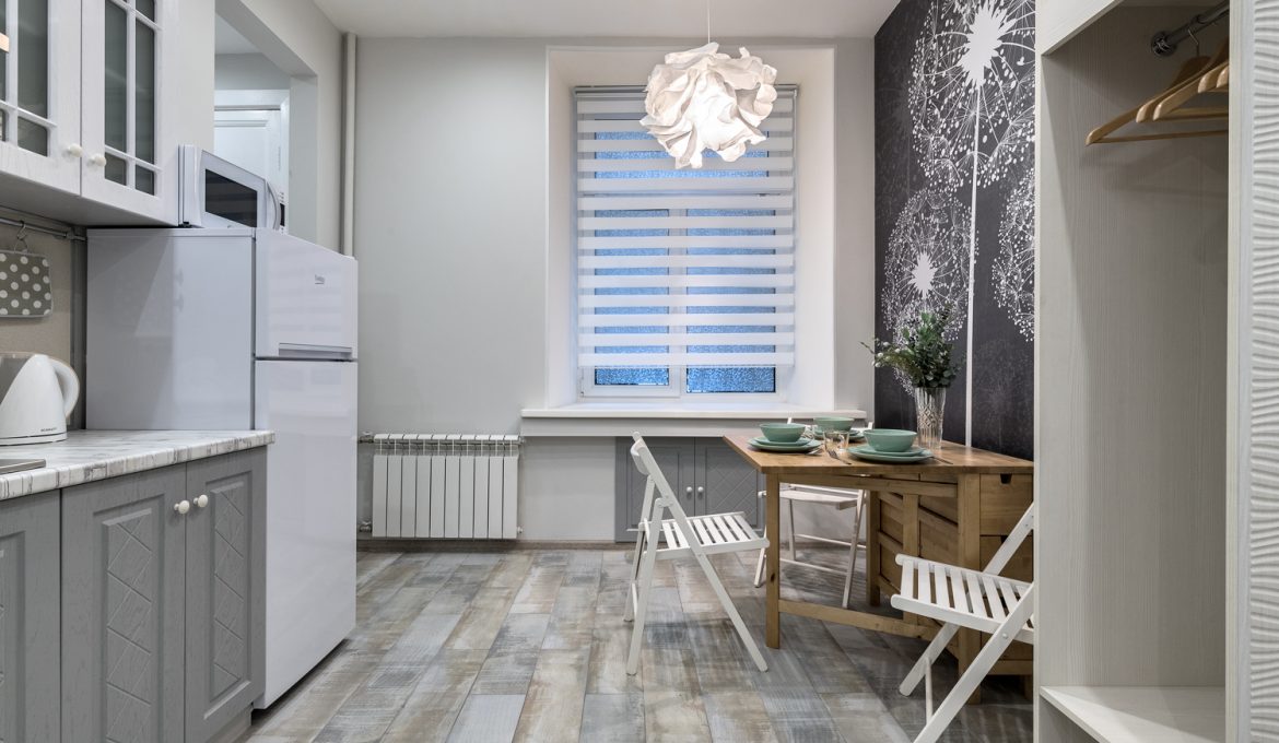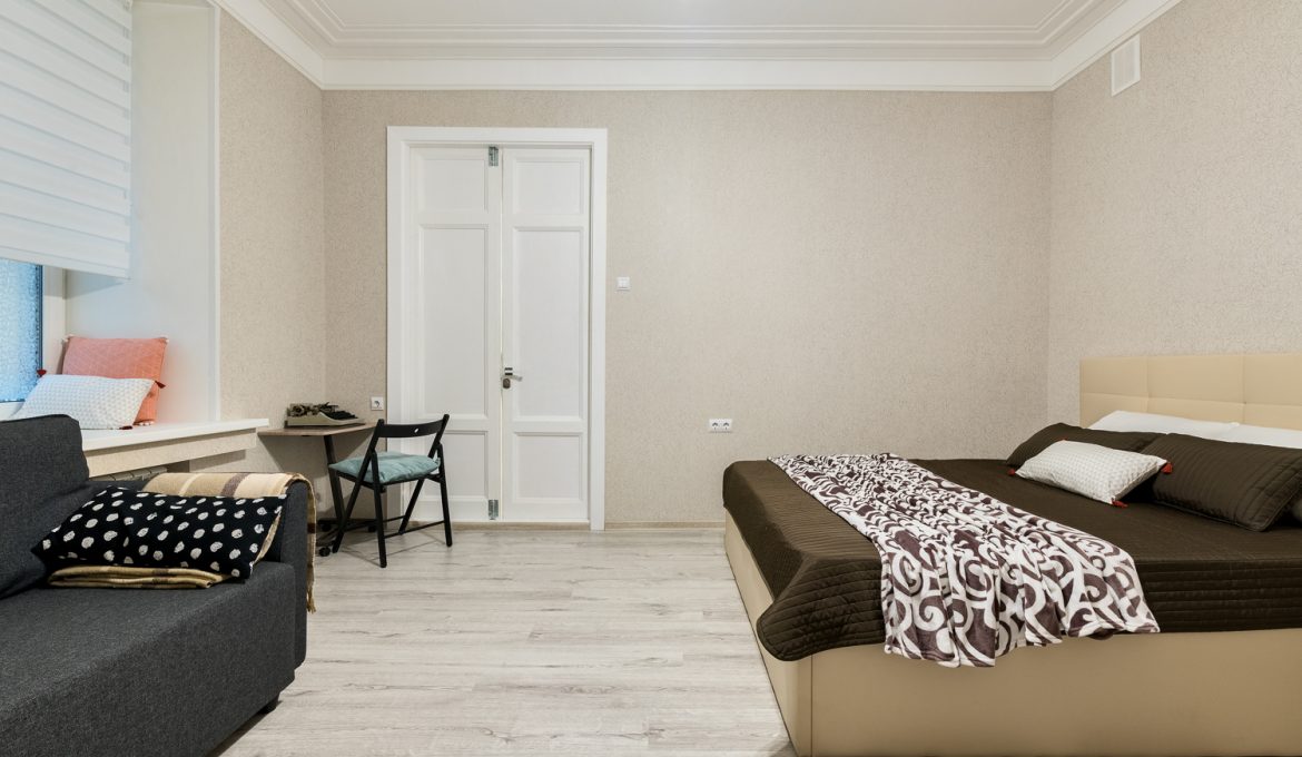 - Мебель: диван раскладной, комод, кровать двуспальная, кухонная мебель, прикроватные тумбочки, стол, стулья, шкаф