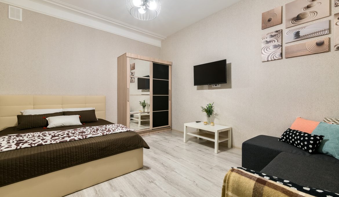| Апартаменты 1-комнатные | 45 кв.м. | 4 чел. | Кухня, Мебель (диван раскладной, комод, кровать двуспальная, кухонная мебель, прикроватные тумбочки,... |